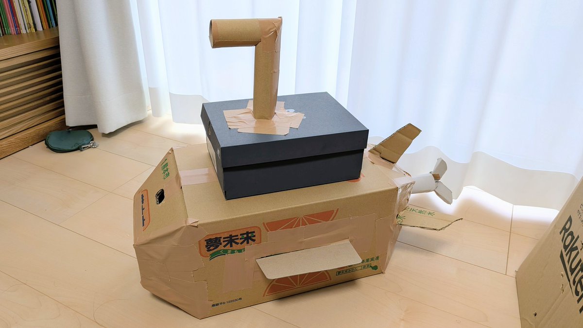 What would it look like if I made a submarine for children out of this [cardboard box]