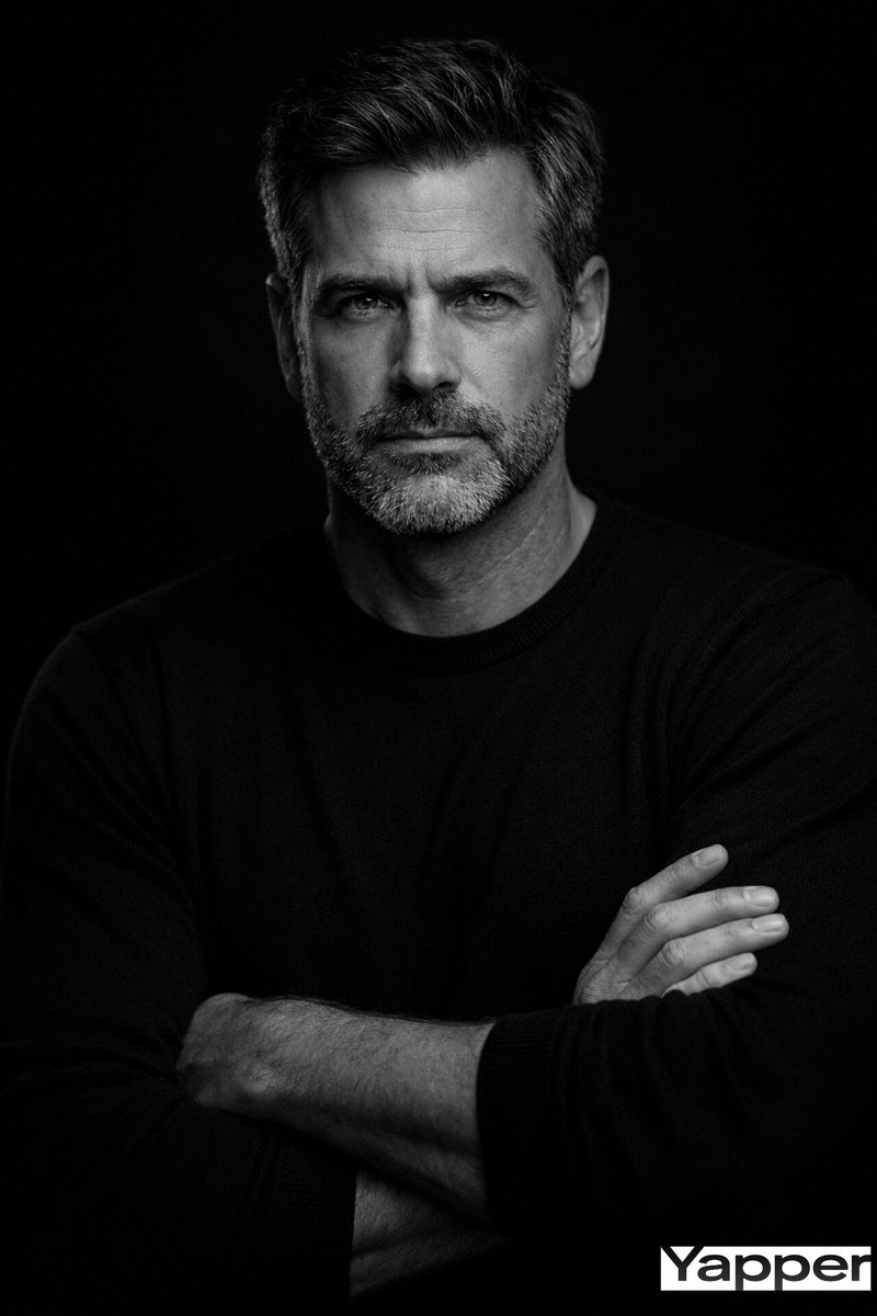 z-image generates this fine art cinematic monochrome portrait of a mature man, featuring high contrast and detailed studio lighting.
