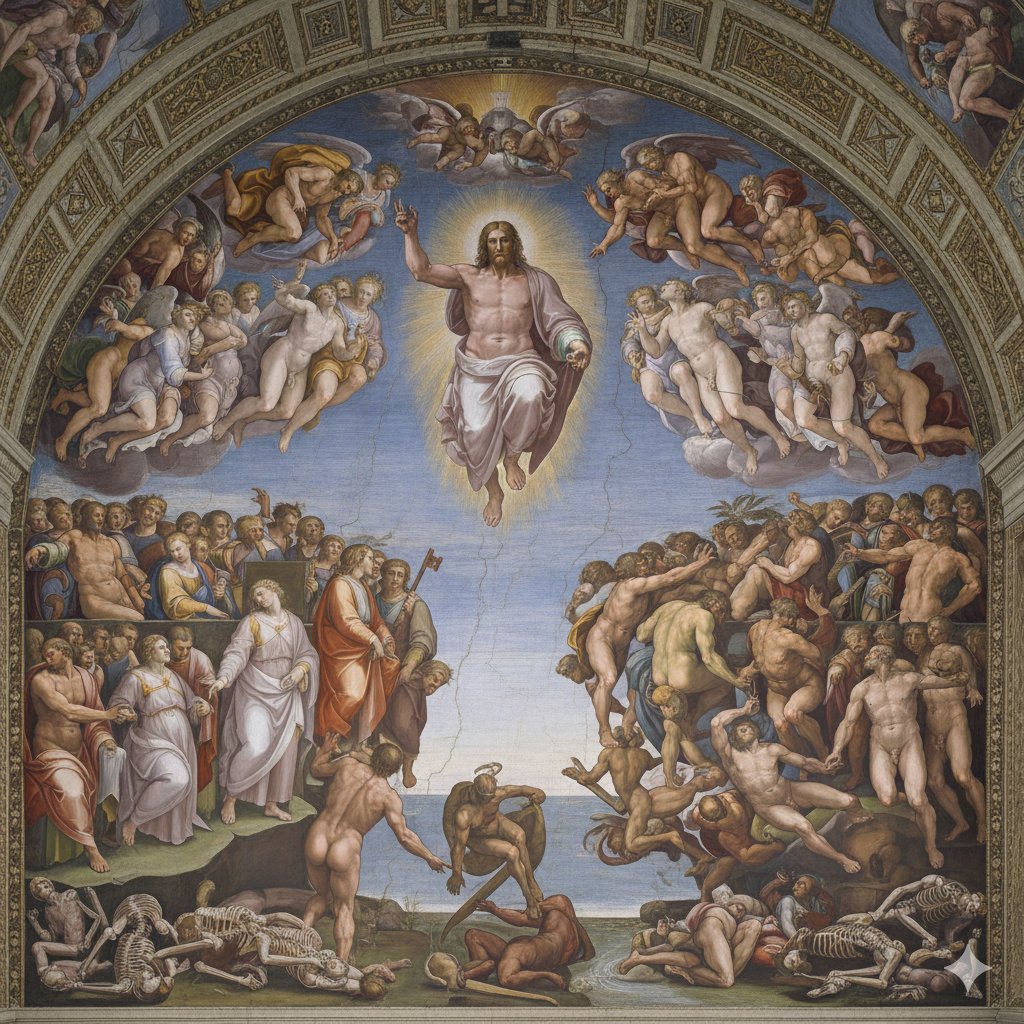 生成一张米开朗基罗《最后的审判》风格的图片!