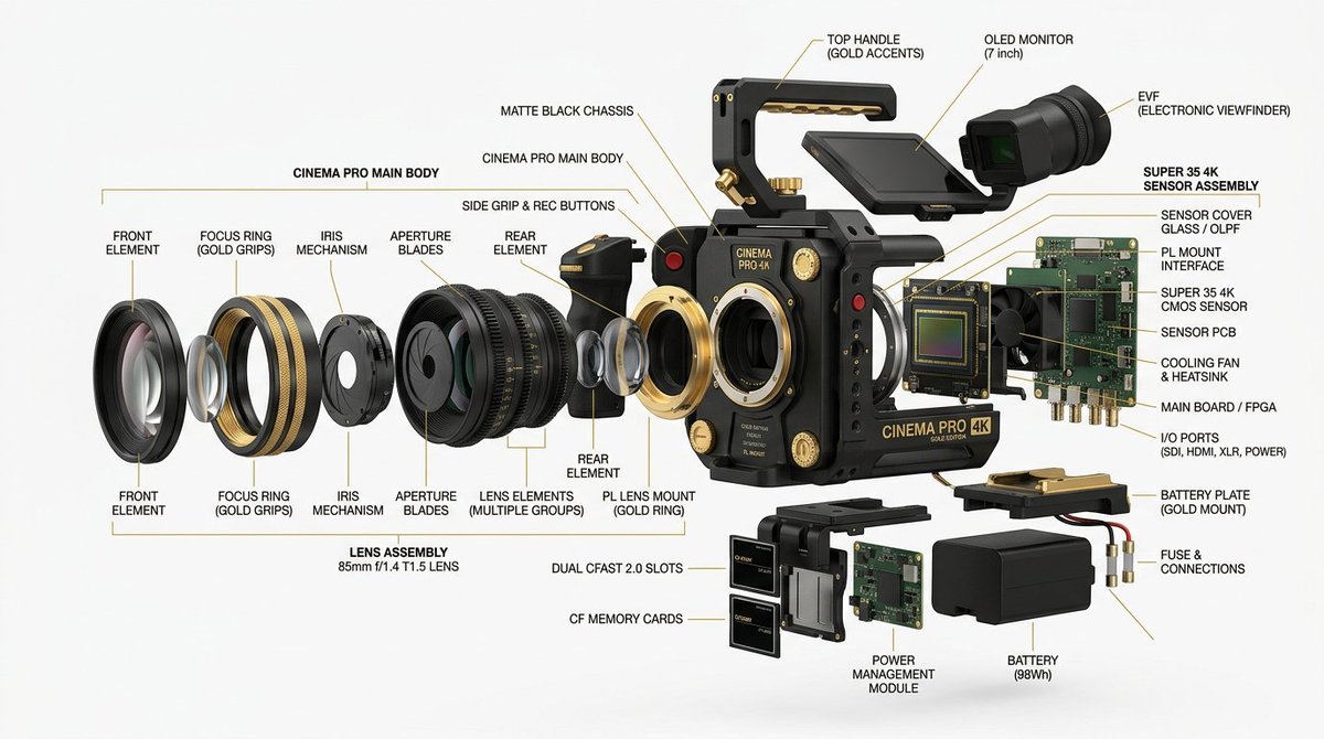 产品设计,此处为物品,爆炸图,白色背景,三维,高度精细的内部组件,影室布光,产品摄影,最佳质量