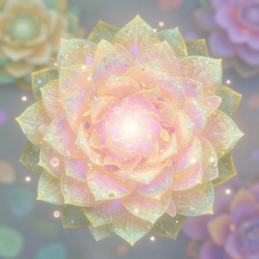 主体被魔法粒子花海环绕,粒子形似魔法花瓣或叶子。使用柔和的、迷人的[颜色1]和[颜色2]色调,创造一种自然魔法的感觉。